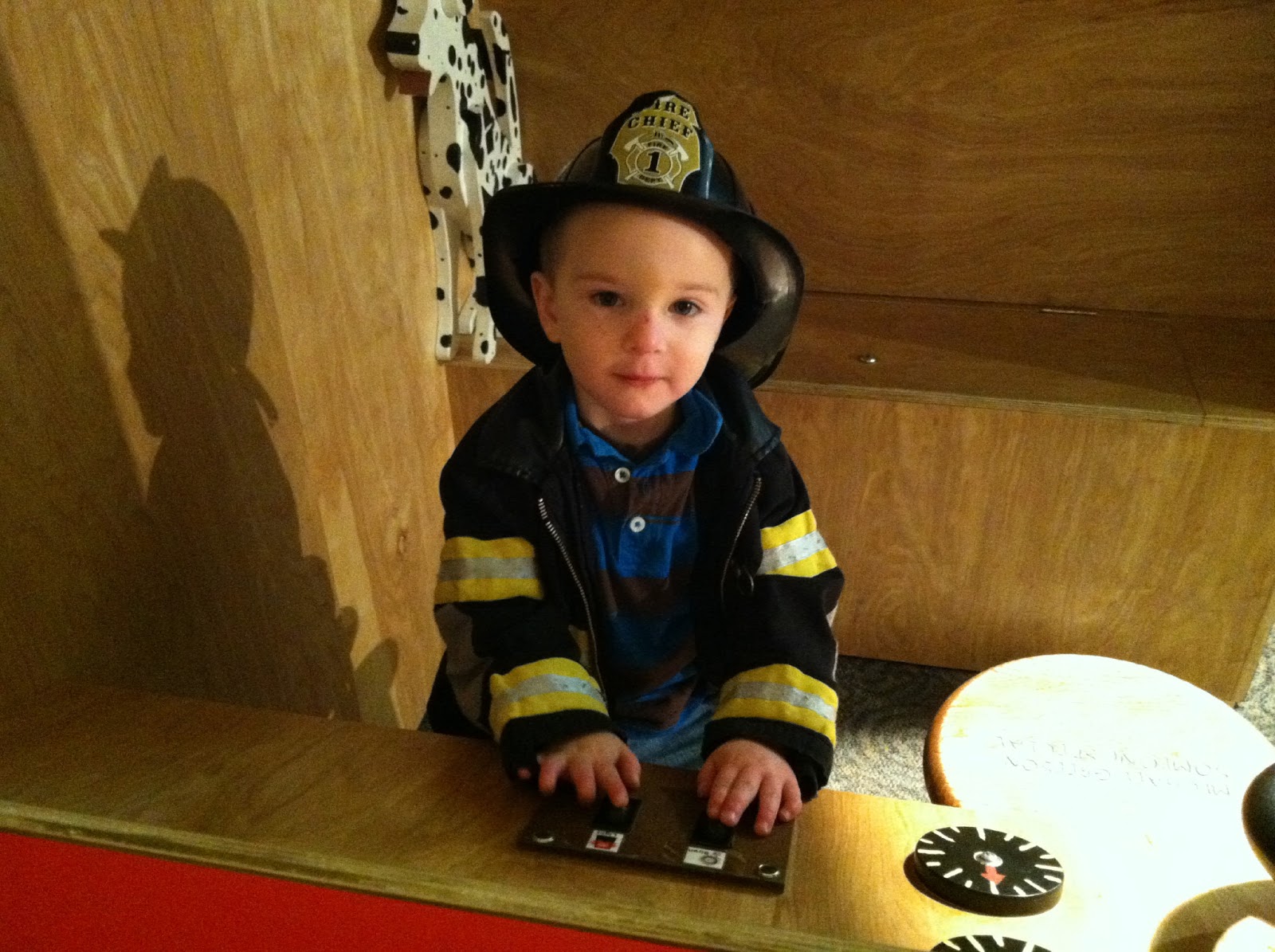| Owen just driving the fire truck, very calm and not on his way to an EMERGENCY. |